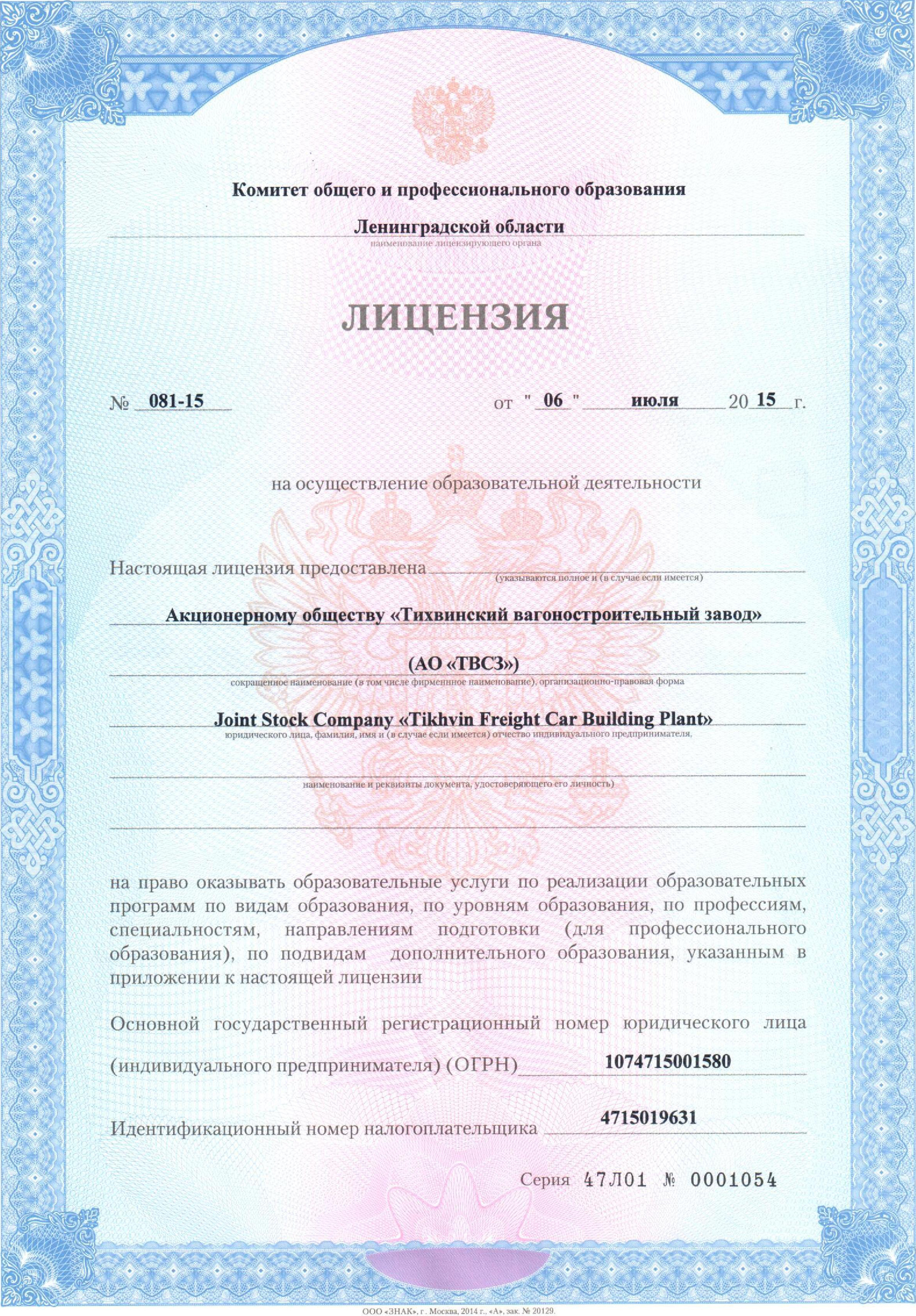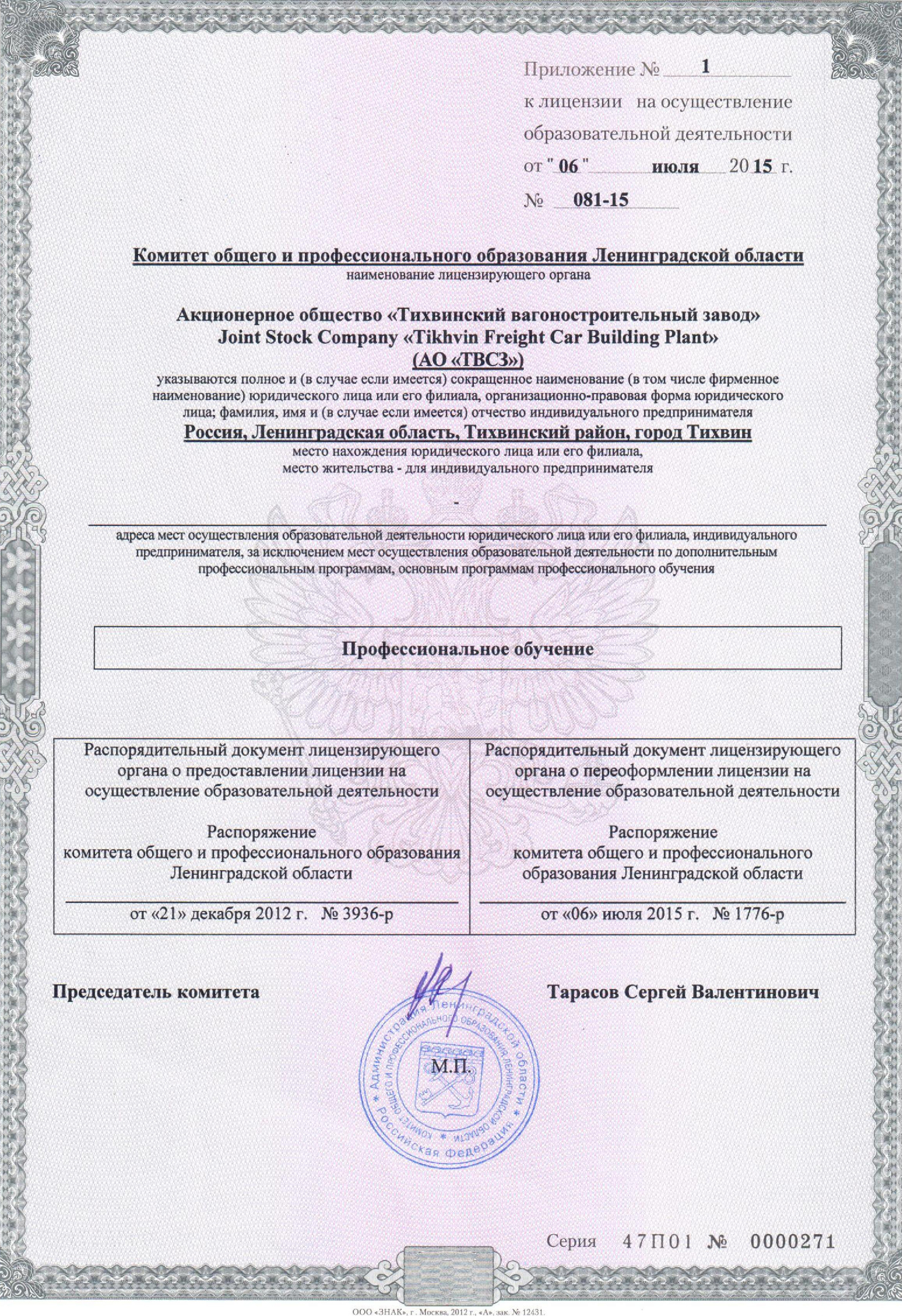 Преподавательская деятельность осуществляется работниками АО «ТВСЗ» в порядке совмещения.