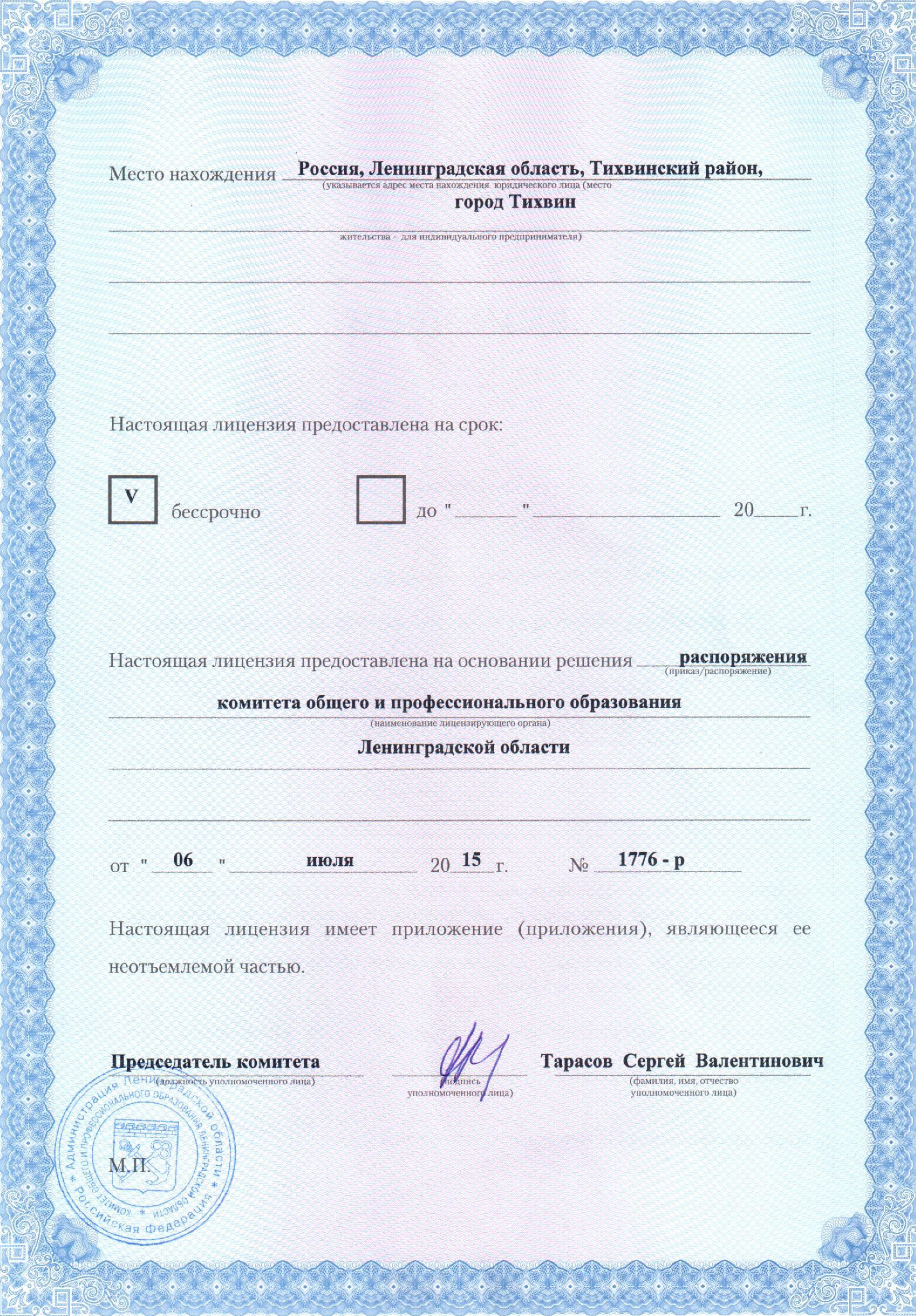 Образовательная деятельность осуществляется с 21 декабря 2012 года.