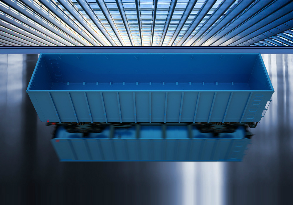 The independent bogie braking system is used for the solid-bottom gondola of model 12-9869, which provides more advantageous braking conditions, possesses higher efficiency and reliability in comparison with the traditional braking system.